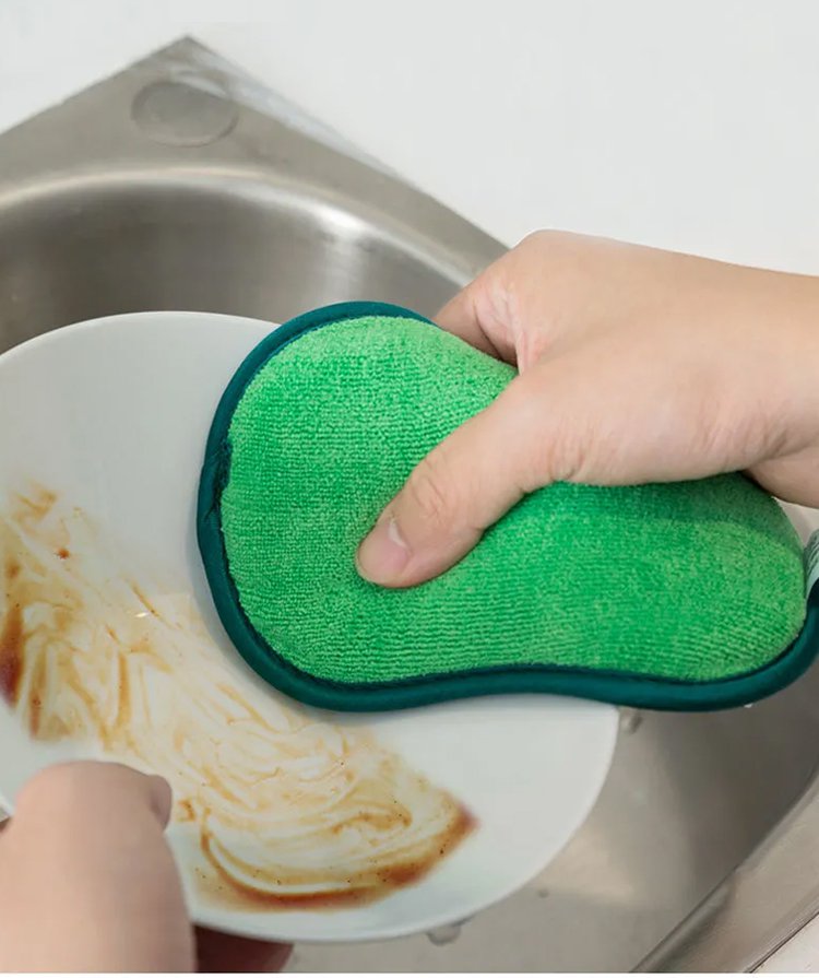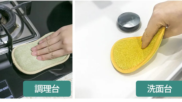 手にフィットする両面キッチンスポンジ